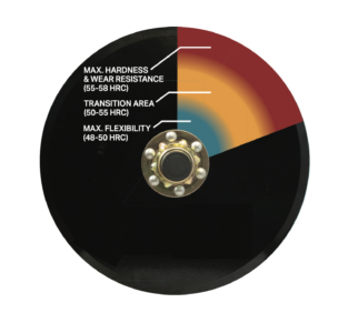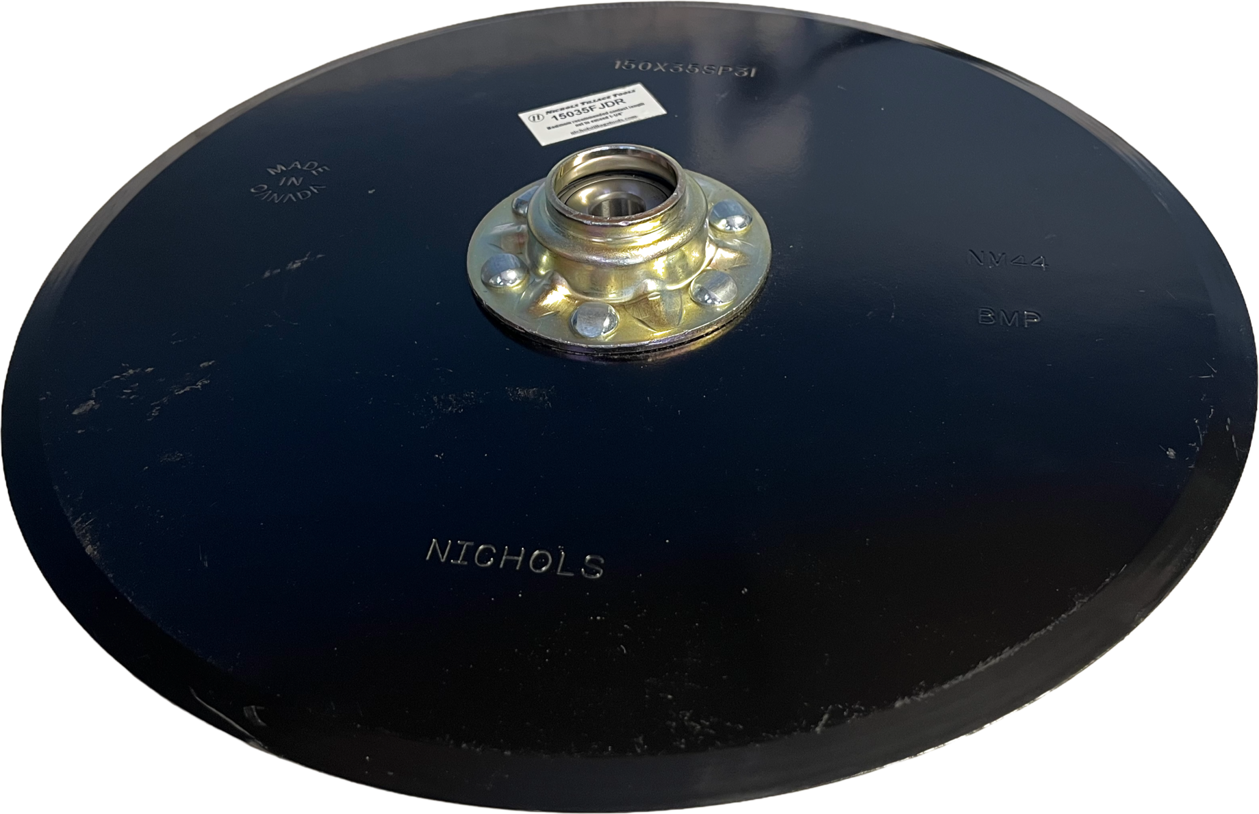 This 15″, 4.5mm Nichols seed disk opener blade comes with a 205 double row bearing. The 205 bearing is an upgrade from a standard 204 bearing many OEMs use. The blade is 4.5mm thick for high wear. Good for high speed planters.